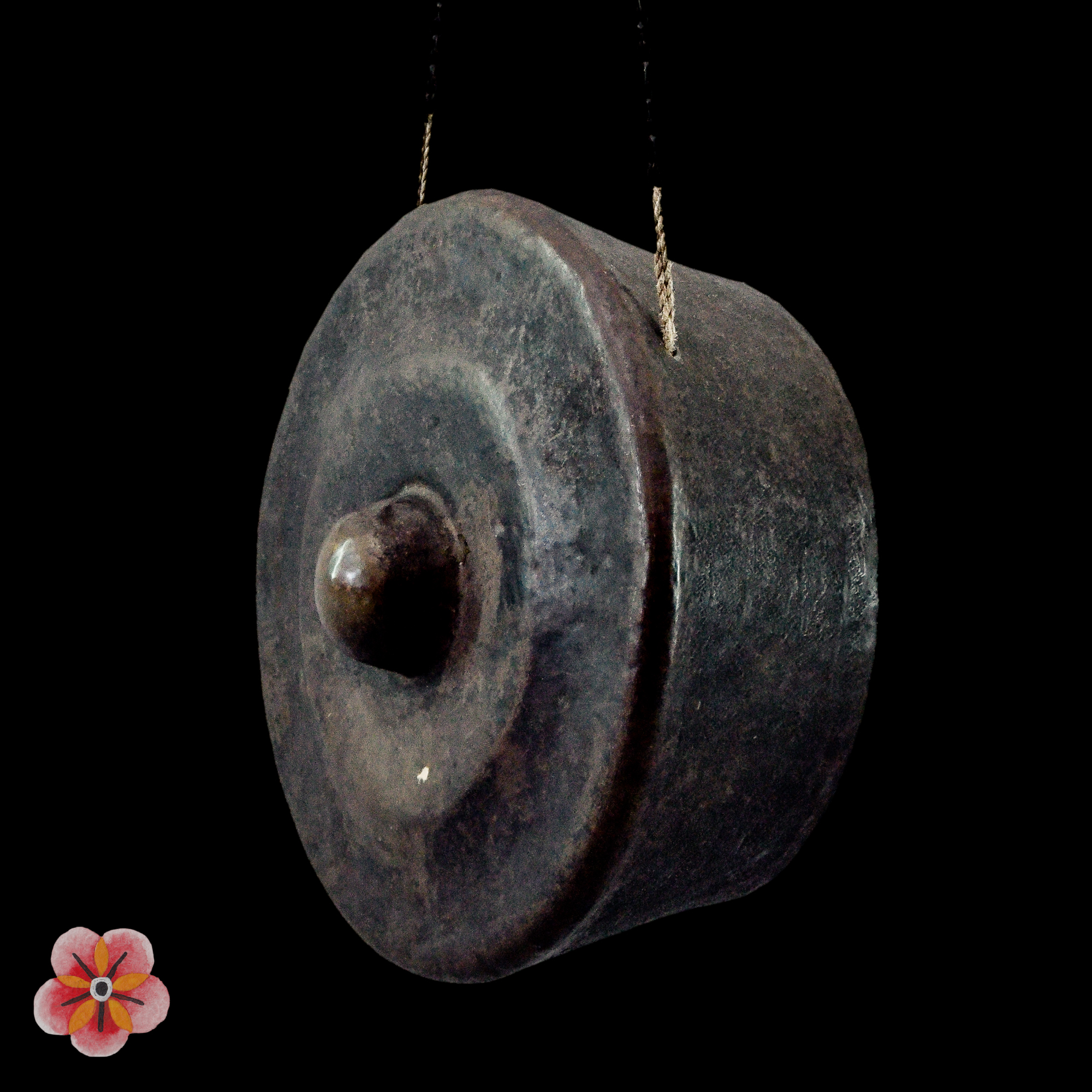 Collected in the 1970s by a Swiss traveler from Basel, this gong is not only in excellent condition but also holds a unique feature - it still retains its original chain used for hanging. Many gongs of this kind have lost their chains over time, often replaced with ropes. This exceptional preservation adds to the gong's historical and artistic value.