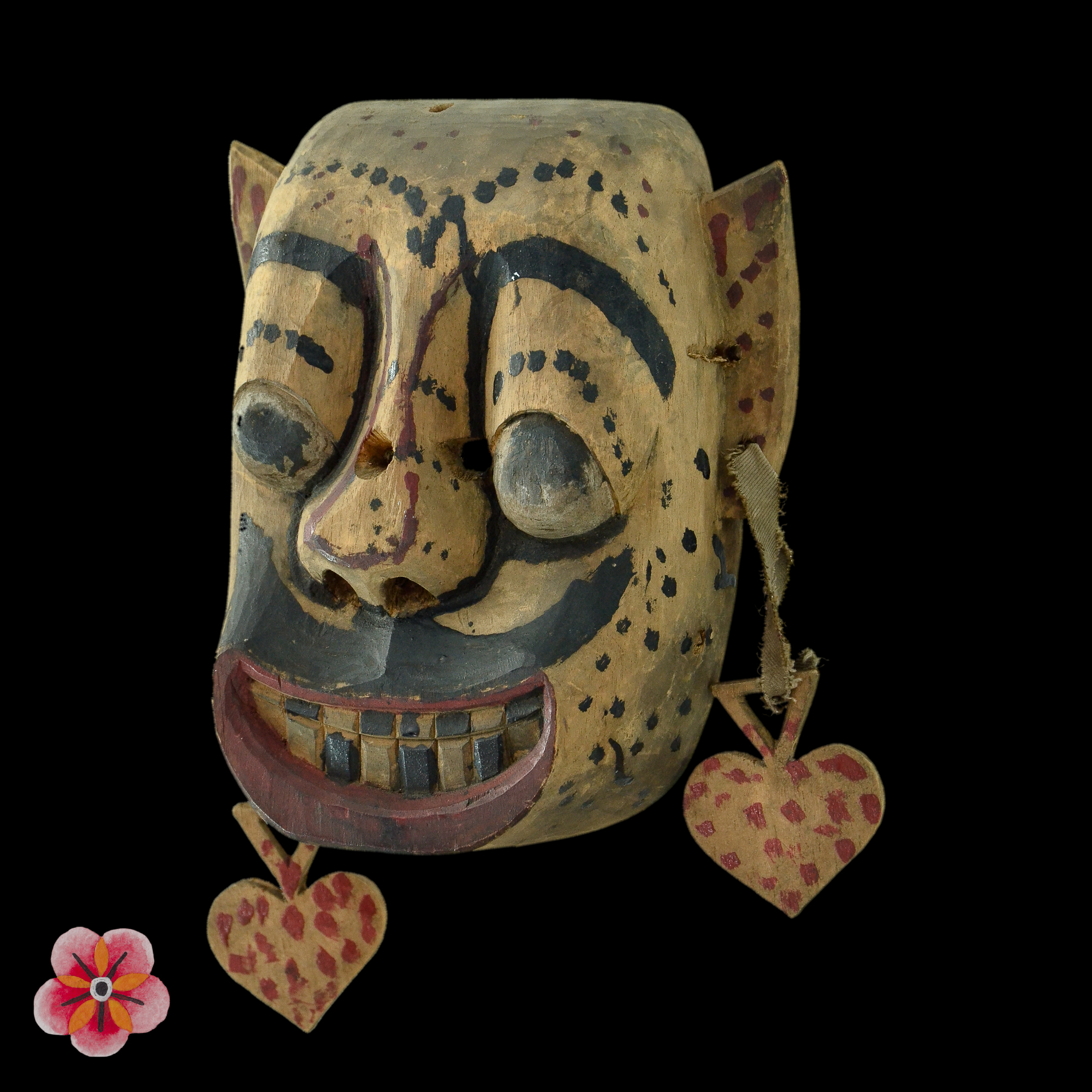 The beauty of this mask lies not only in its strong and expressive features, which align perfectly with its revered role, but also in the special charisma it possesses. The master mask maker who crafted this work imbued it with a unique essence known as "taksu." Taksu is an intangible quality recognized in the creations of great artists, bestowing upon their works a profound presence that goes beyond mere aesthetics.
