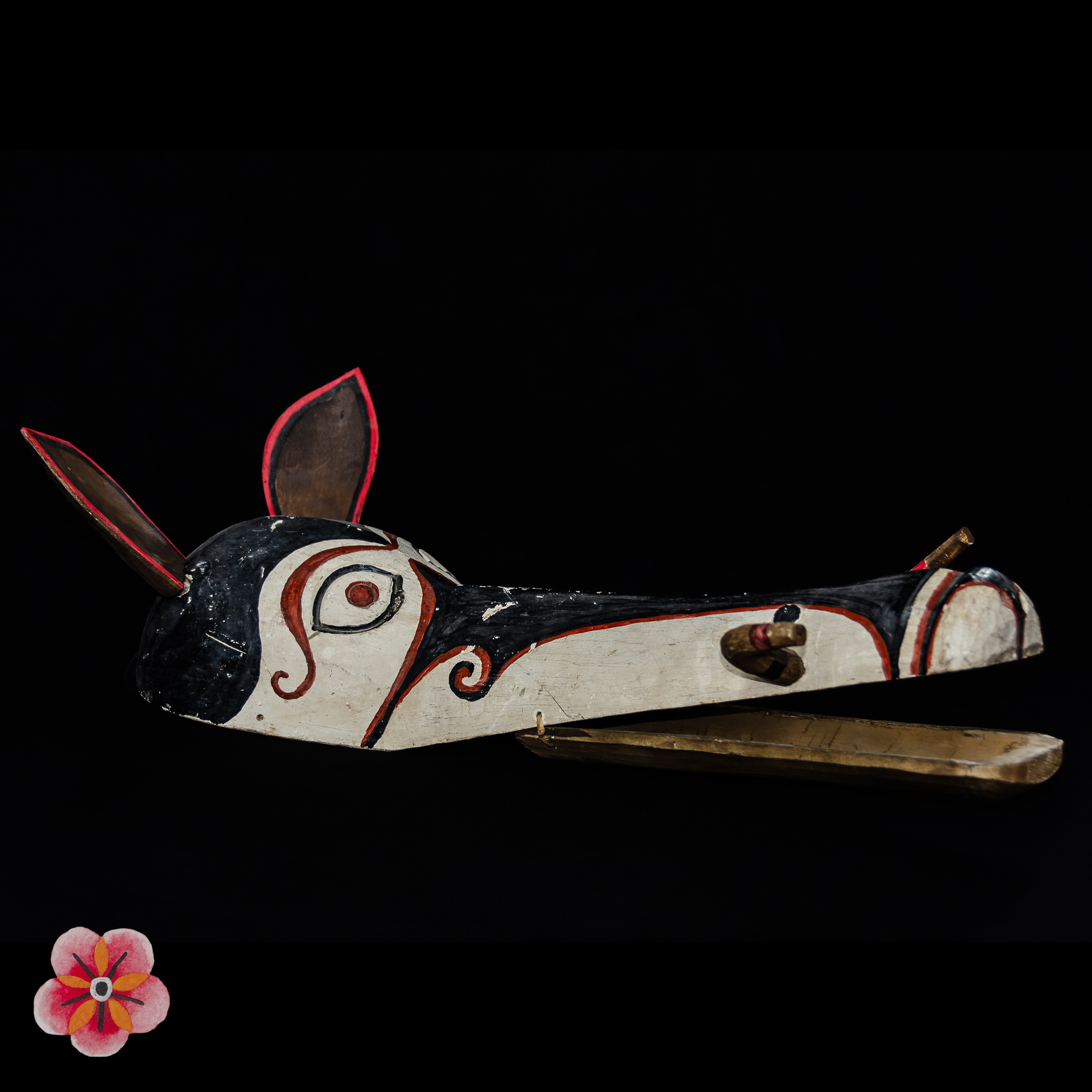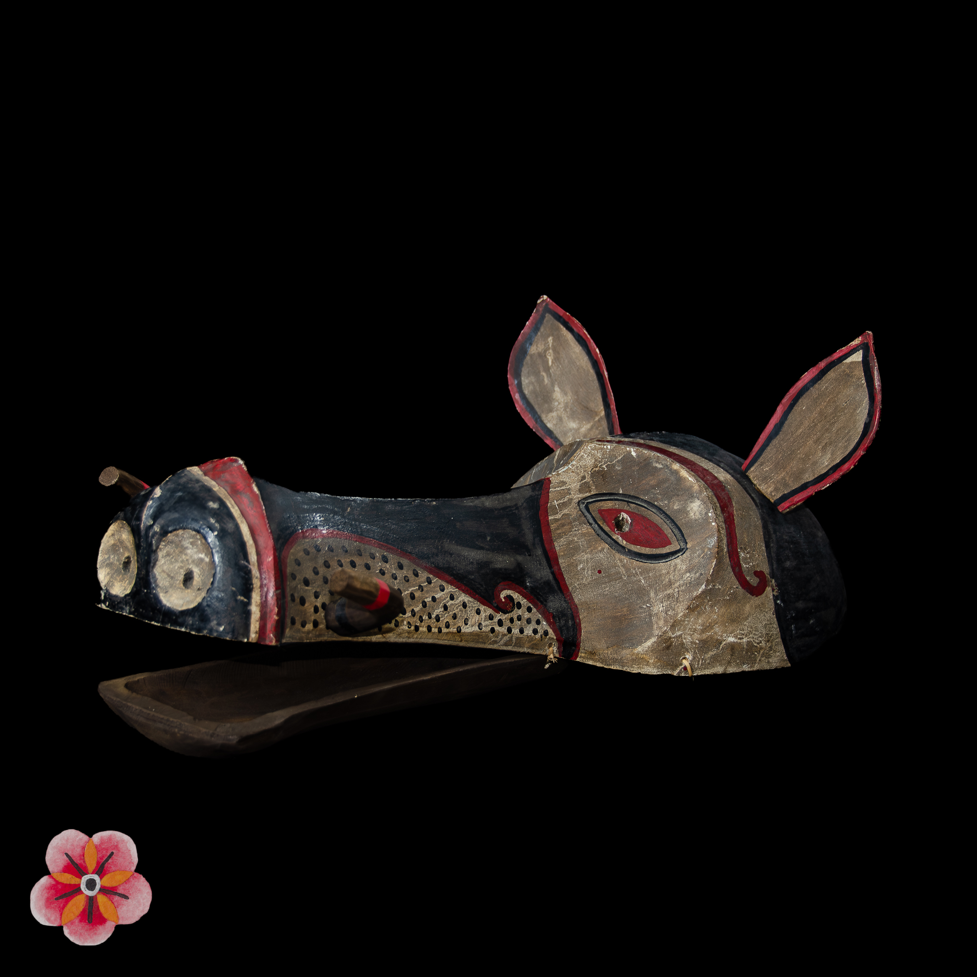 Every detail of the mask reveals the deep connection between humans and nature, expressing the bond between the community and the surrounding world. During celebrations and propitiatory dances, this mask holds a prominent role in ensuring the prosperity of rice cultivation and the fertility of the land.